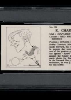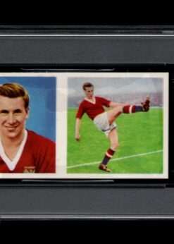 The card was produced during Charlton’s early senior years at Manchester United, shortly before his rise to international prominence. Printed on thin, uncoated stock typical of 1950s confectionery issues, it features a simple portrait layout with the player’s name and club below.
