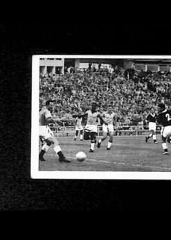 Issued in West Germany for the 1958 World Cup, this WS-Verlag Fussball-Weltmeisterschaft card depicts the Brazil v Wales quarter-final, where Pelé scored his first World Cup goal at age 17. That strike decided the match and marked the beginning of Brazil’s run to their first World Cup title.