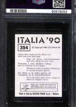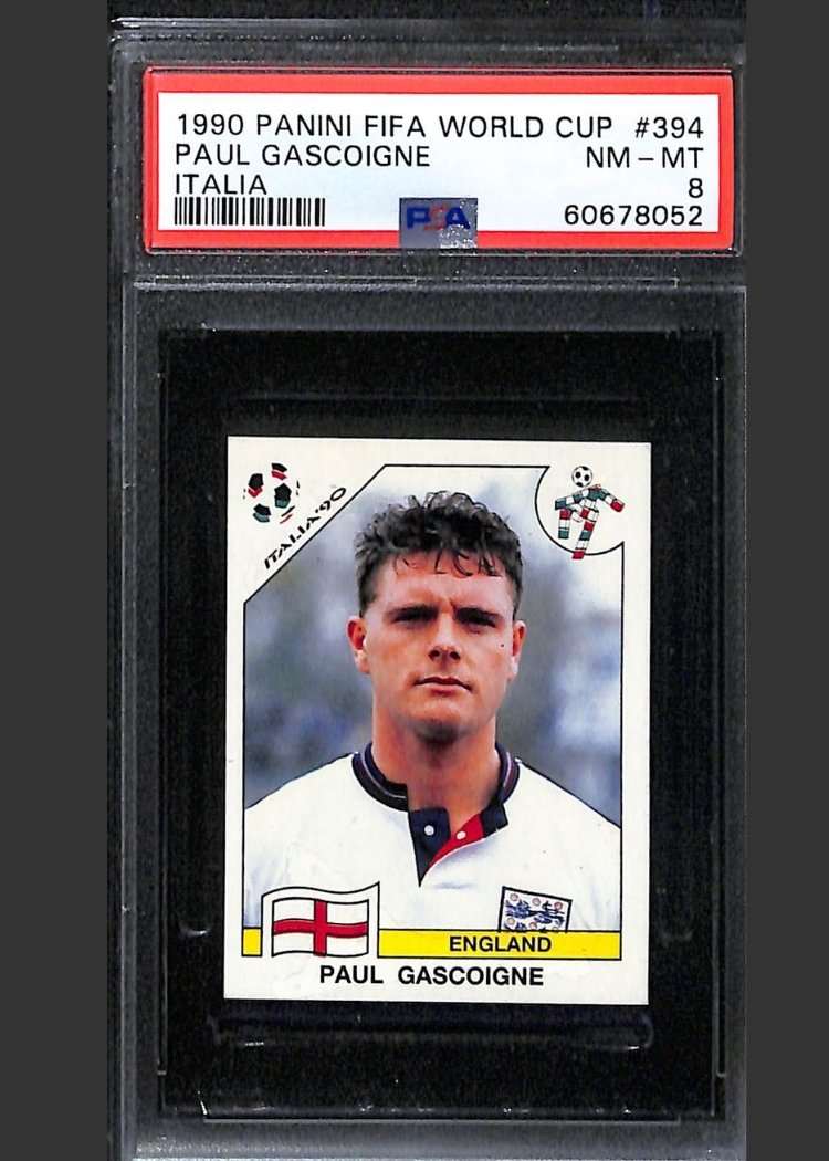 Gascoigne had moved to Tottenham Hotspur from Newcastle United in 1988 for a British record fee, establishing himself as one of the country’s most gifted midfielders by the time of Italia ’90. His performances in the tournament earned him international recognition, and this card remains a key early appearance in Panini’s football line — a cornerstone piece for collectors of both England and classic-era World Cup issues.