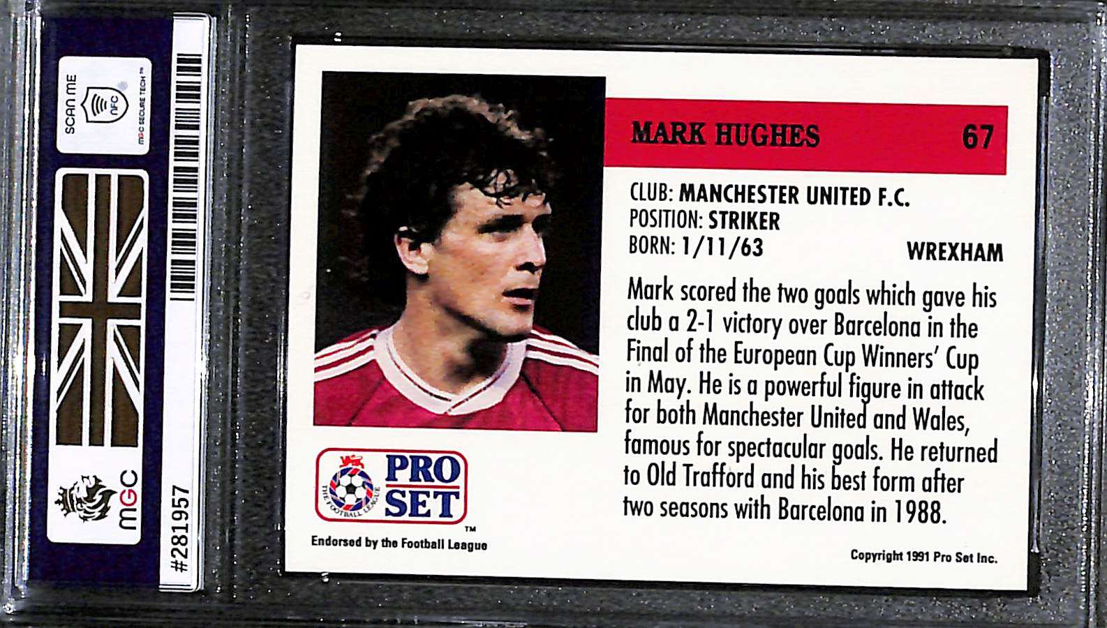 This Mark Hughes card is number 7 from the 1991 Pro Set English Football collection, covering the 1990-91 season.