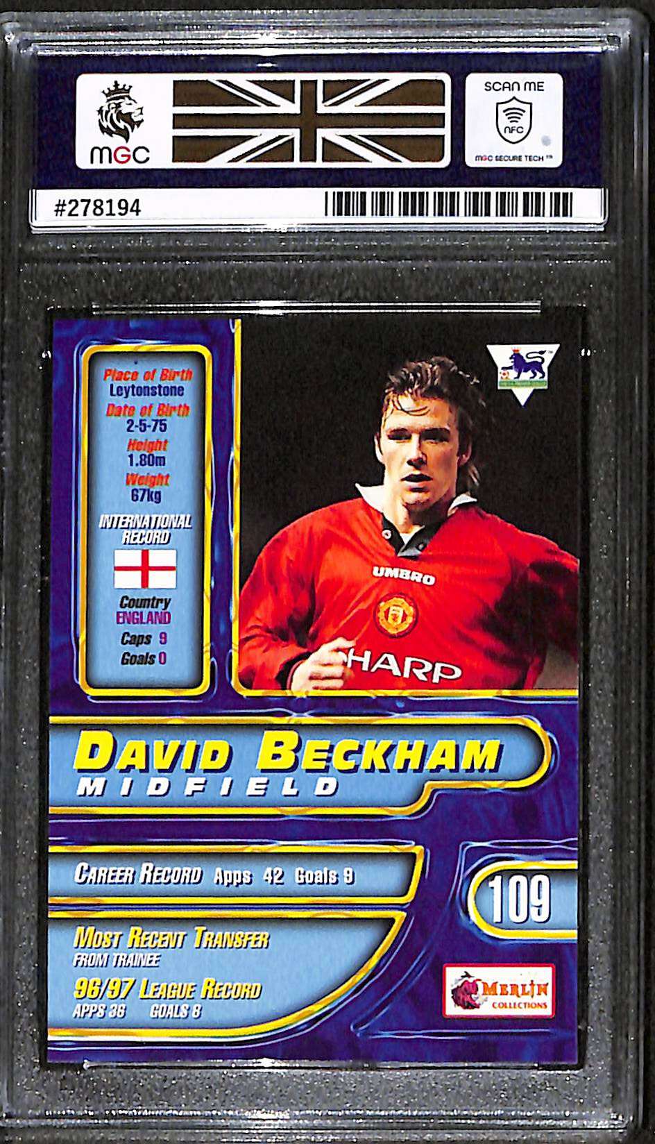 1997 Merlin Premier Gold #109 David Beckham MGC 10 cert: 278194