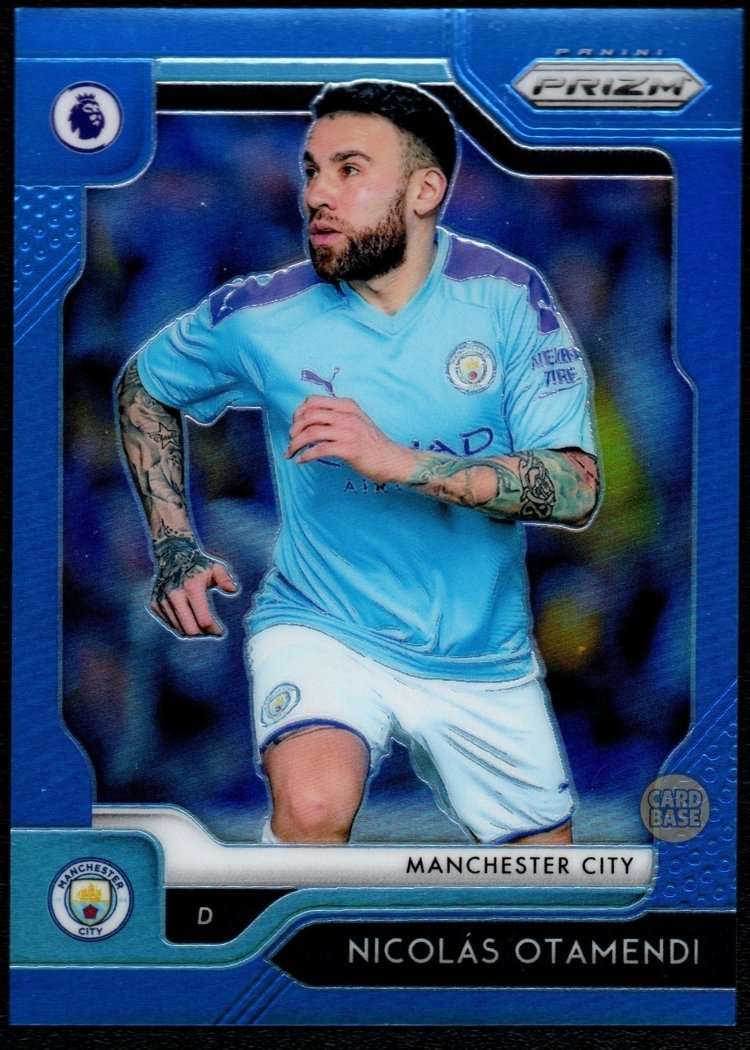 Blue Prizm parallel featuring Manchester City defender Nicolás Otamendi.