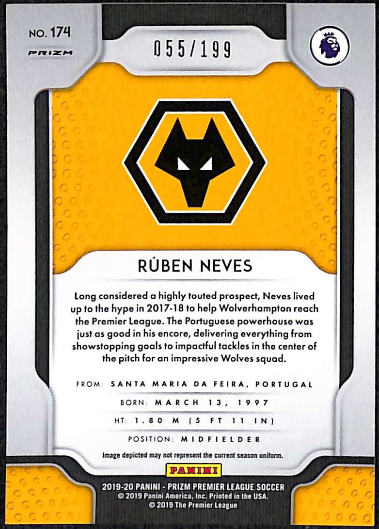 Ruben Neves #174 – Wolverhampton Wanderers 2019-20 Panini Prizm Blue Prizm 55/199
