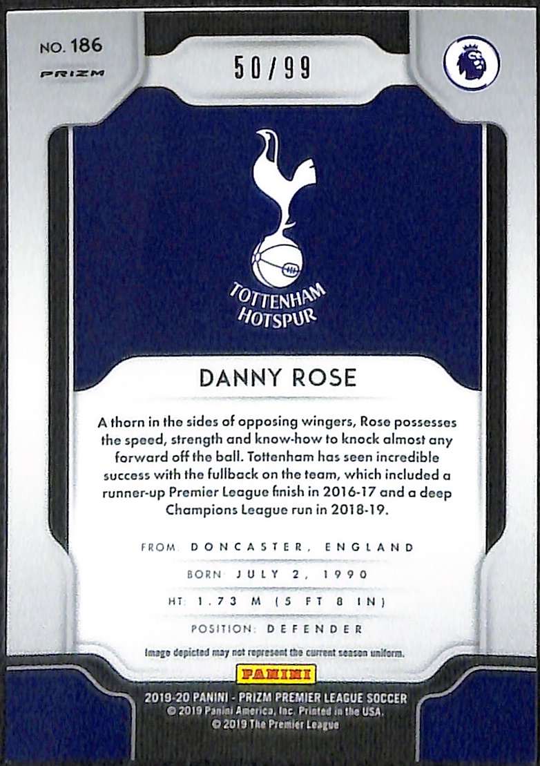 2019-20 Panini Prizm Premier League Purple Prizm Card 186 Danny Rose 50/99