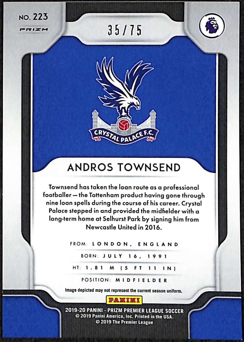 2019-20 Panini Prizm Premier League Violet Breakaway Card 223 Andros Townsend 35/75