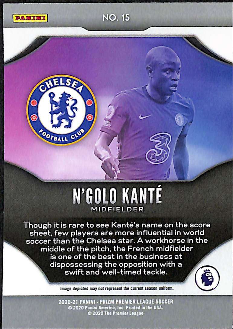 This N’Golo Kanté Fireworks is card number 13 from the 2020-21 Panini Prizm Premier League collection. The card is unnumbered.