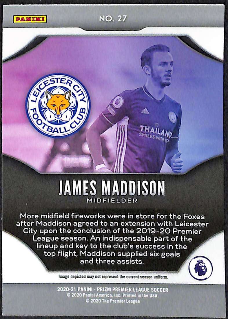 Maddison joined Leicester City from Norwich City in 2018 for a reported £22 million. This card was issued during his third season with the club, a campaign in which Leicester finished fifth in the Premier League and won the FA Cup for the first time in their history.