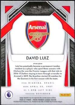 This issue was part of David Luiz’s final season with Arsenal, following earlier spells with Chelsea and Paris Saint-Germain. The Breakaway line offered collectors an alternative to standard hobby exclusives, featuring coloured refractors and low-print parallels that remain popular in the Prizm format.