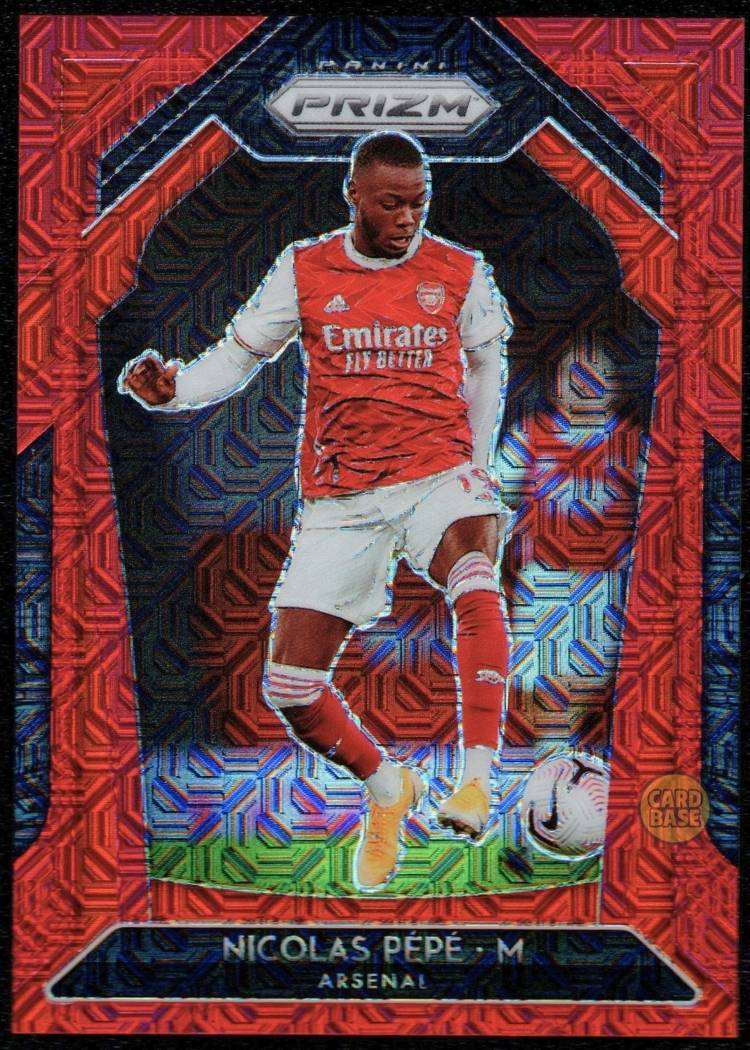 The Red Mojo parallel is a numbered chase card with a distinctive patterned design. Its red colouring pairs strongly with Arsenal’s home kit. Pépé joined Arsenal from Lille in 2019 for a then-club record £72 million transfer fee, and by the 2020-21 season he was an established member of the squad, featuring regularly in league and European fixtures.