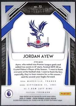 Jordan Ayew Blue Breakaway card #72 numbered 61/195 from 2020-21 Panini Prizm Premier League