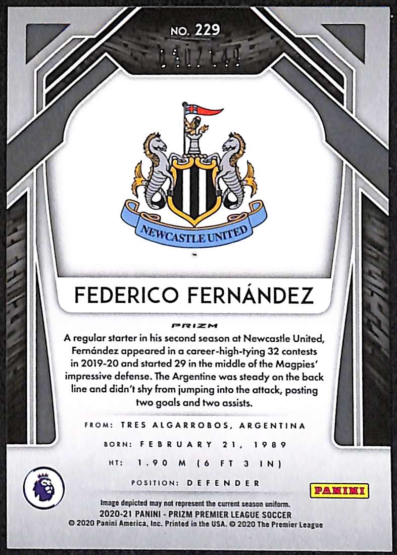 Federico Fernández #229 – Newcastle United 2020-21 Panini Prizm Red Prizm 20/149