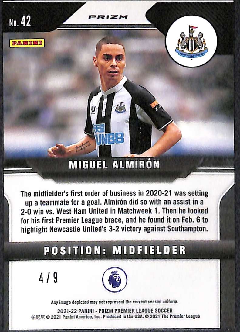 2021-22 Panini Prizm Premier League – Miguel Almiron #42 Choice Green Prizm 4/9