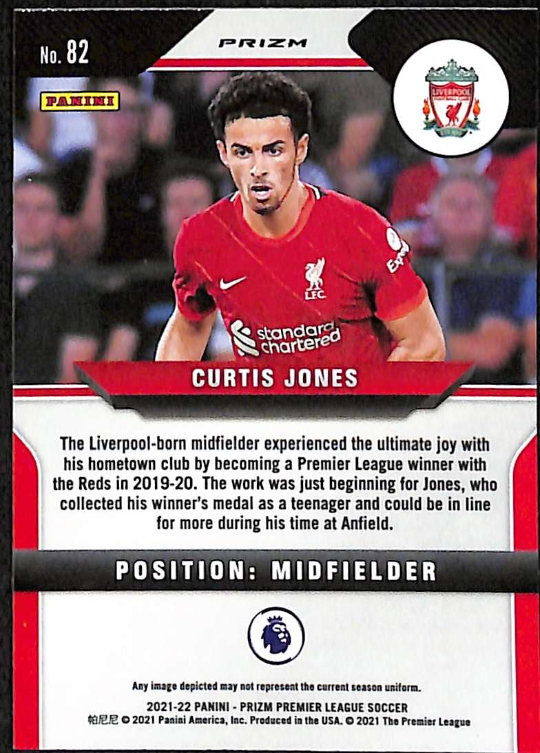 2021-22 Panini Prizm Premier League – Curtis Jones Red Ice parallel, Card 82.