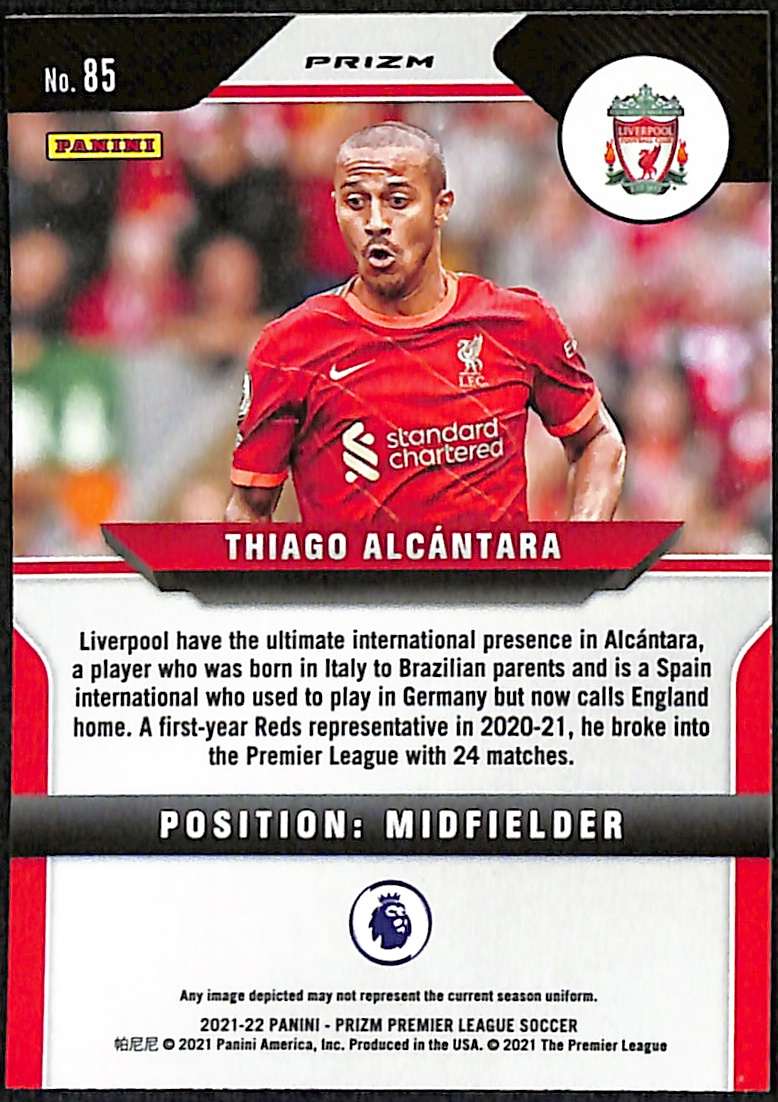 2021-22 Panini Prizm Premier League – Thiago Alcantara Red Ice parallel, Card 85.