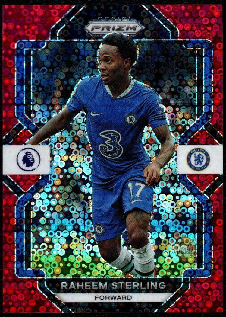 Early numbered Panini Prizm release for Raheem Sterling at Chelsea.