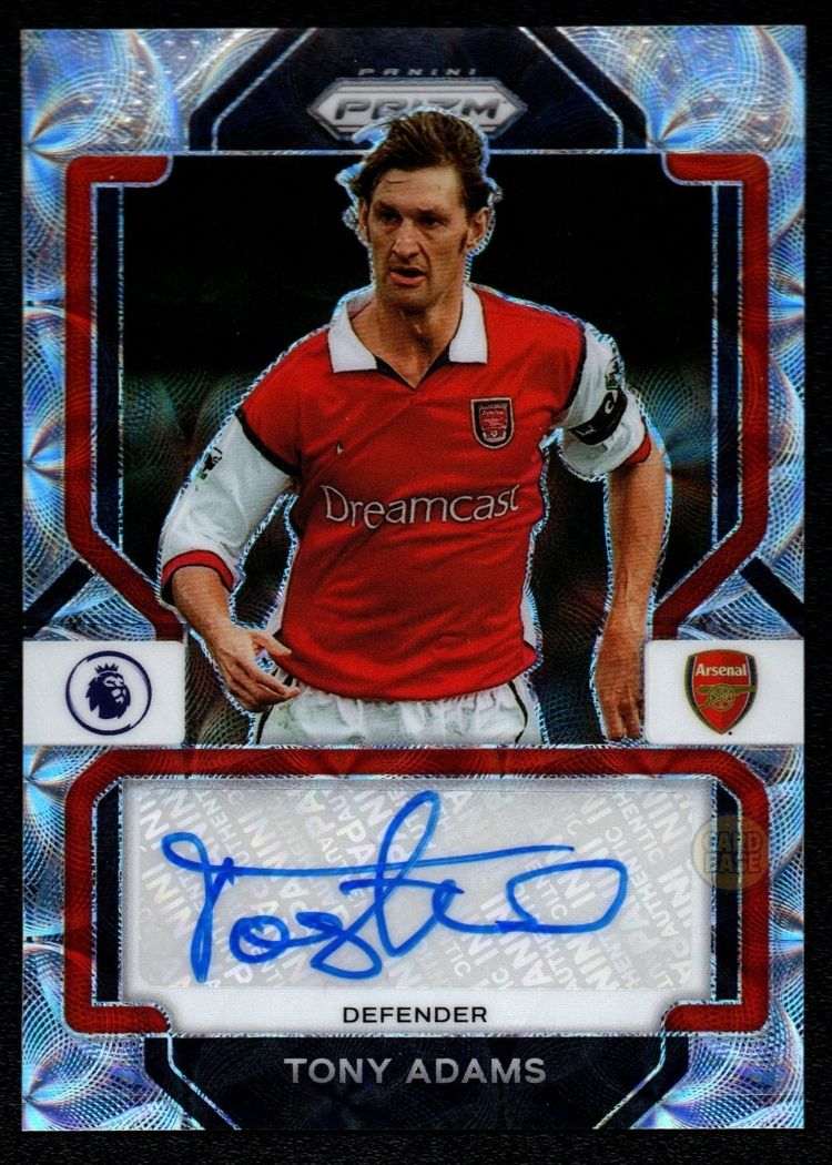 A genuine signed card from Arsenal and England legend Tony Adams, featured in the prestigious 2022-23 Panini Prizm Premier League collection. This Choice parallel autograph offers collectors a rare opportunity to own an authenticated signature from one of the Premier League’s most iconic defenders.