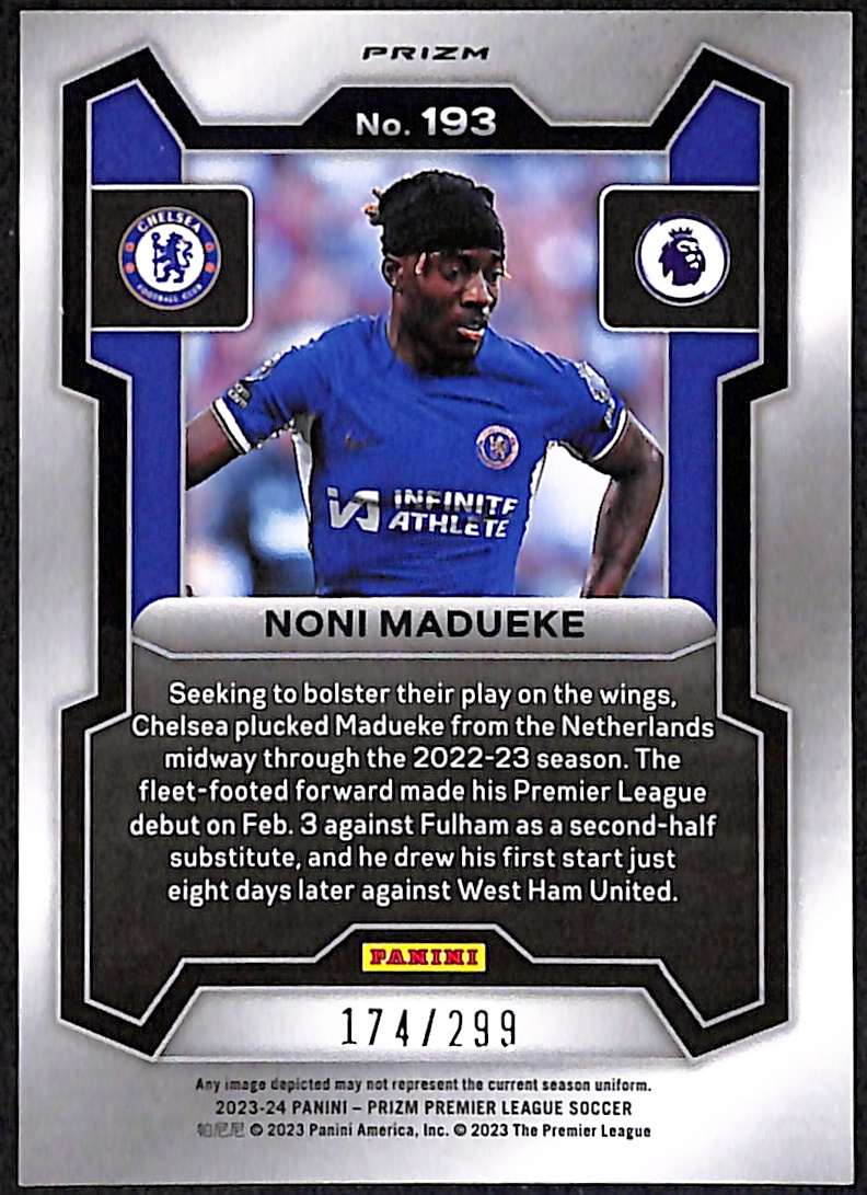 Noni Madueke #193 – Chelsea FC 2023-24 Panini Prizm Blue Prizm 174/299