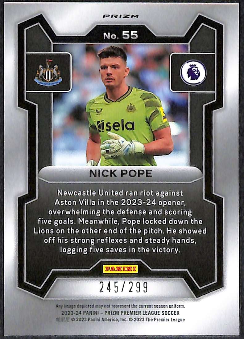 Nick Pope #55 – Newcastle United 2023-24 Panini Prizm Blue Prizm 245/299