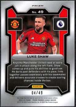 2023-24 Panini Prizm Premier League Red Laser Card 49 Luke Shaw 4/49