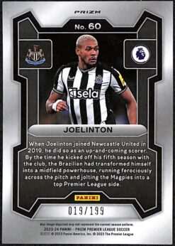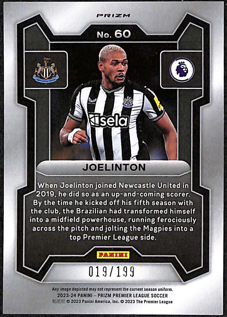 Joelinton Red Prizm parallel card #60 from 2023-24 Panini Prizm Premier League. Numbered 19/199.
