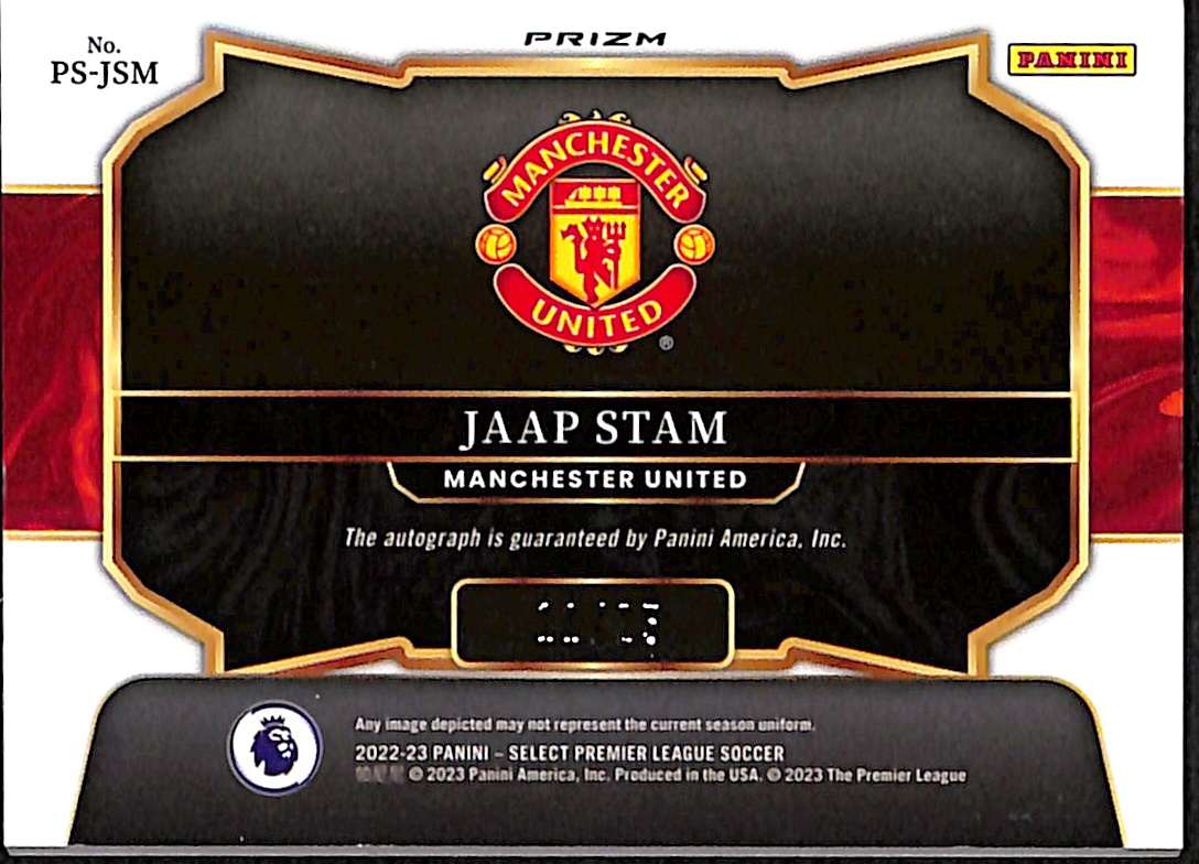 2023-24 Panini Select EPL Tie-Dye Auto Card PS-JSM Jaap Stam 11/25
