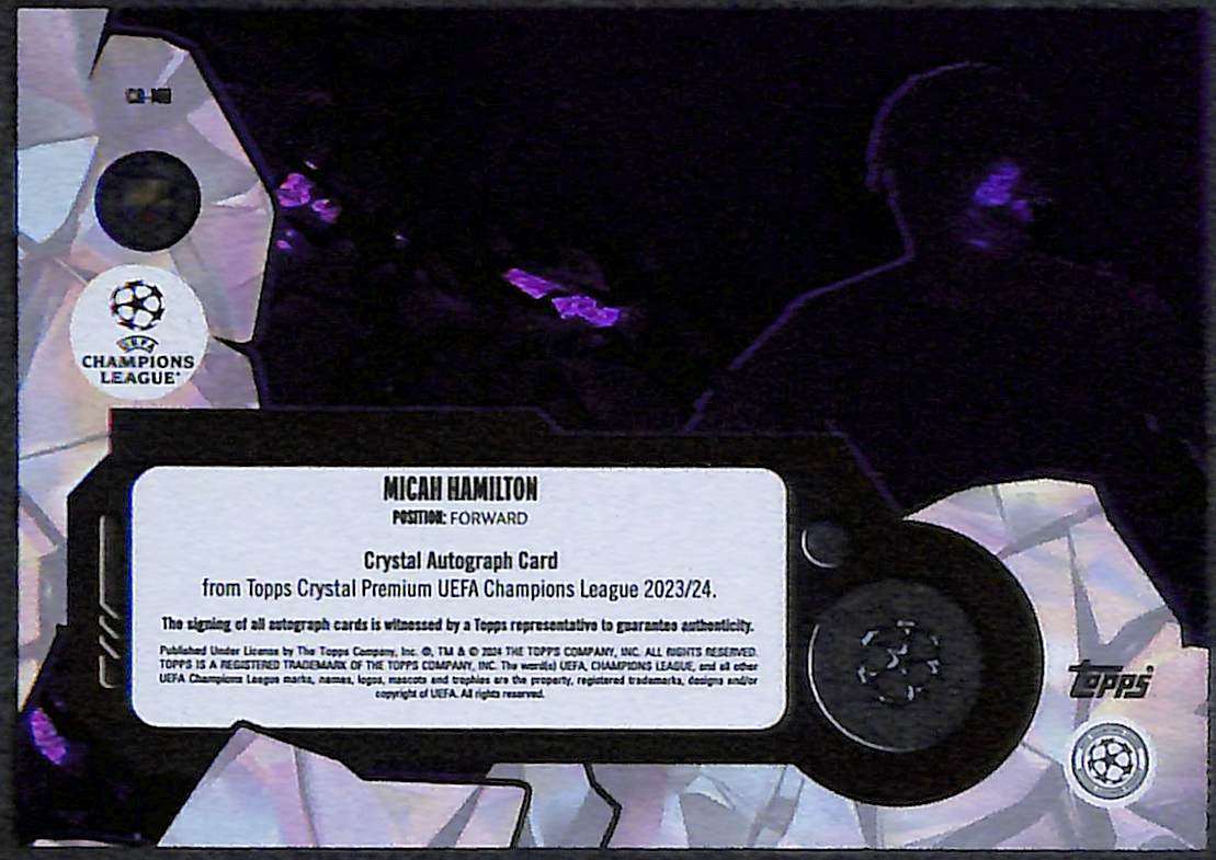 2023–24 Topps Chrome UEFA Champions League Crystal Premium Autograph Card Micah Hamilton 76/99 (Rookie)