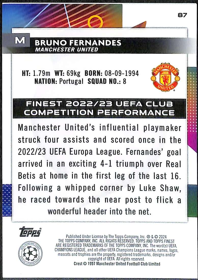 Bruno Fernandes Purple Refractor Card #87 – Topps Finest UEFA Club Competitions 2023-24