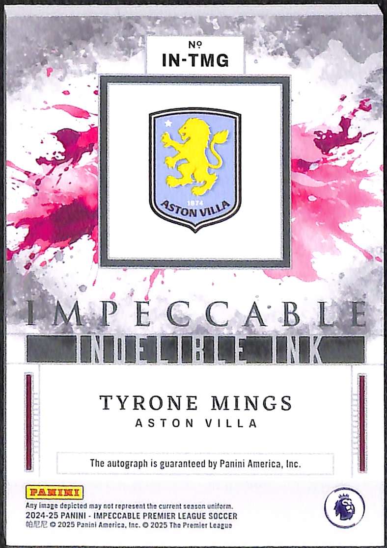 Tyrone Mings Indelible Ink Card IN-TMG – Panini Impeccable Premier League 2024-25