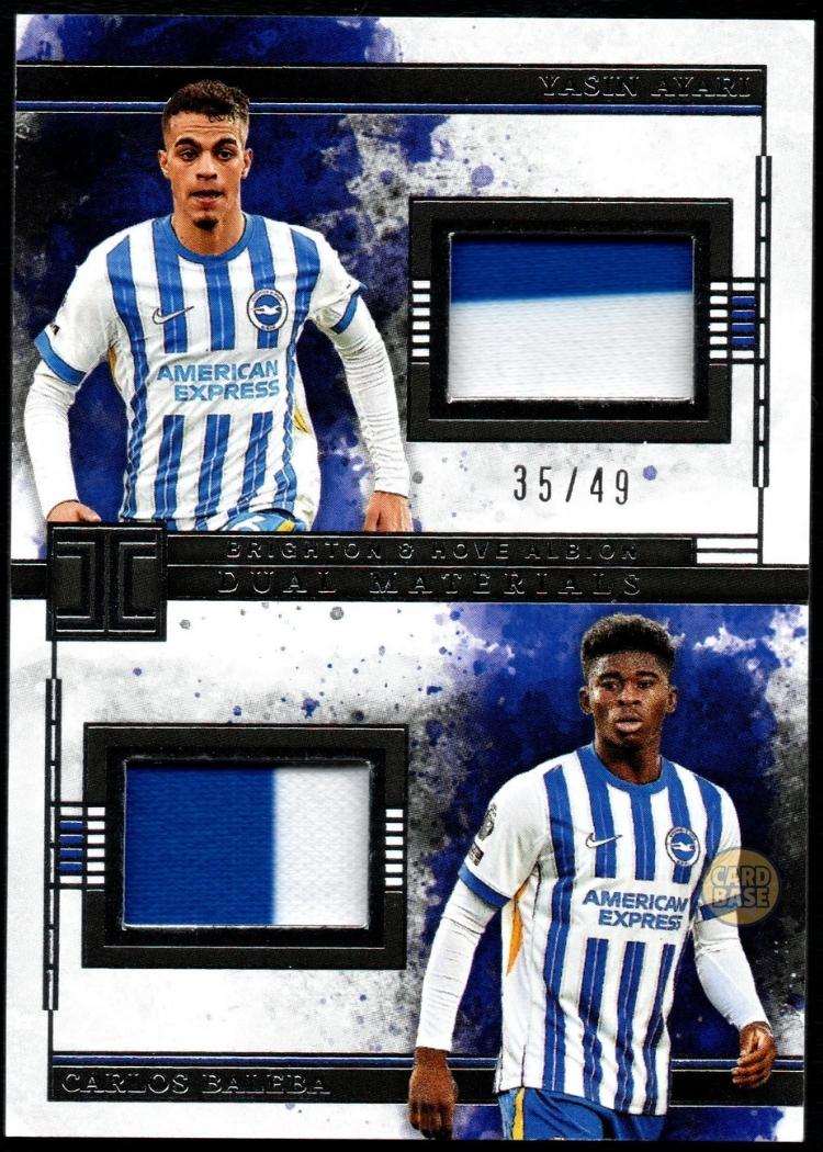 • Dual memorabilia card featuring patches for Yasin Ayari and Carlos Baleba.