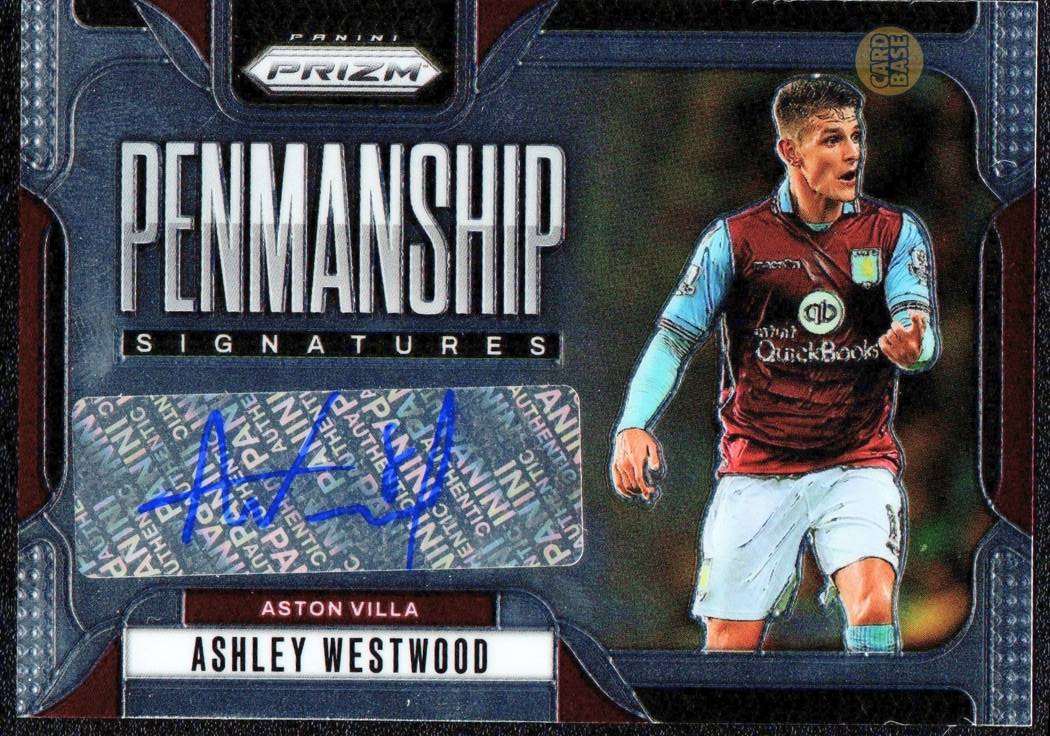 Issued with Westwood’s name while he is listed under Aston Villa (as per checklist data) although by the date of issue the card may reflect his status at Burnley. The model identifies the card as part of the insert line “Penmanship” which highlights player autograph signatures.