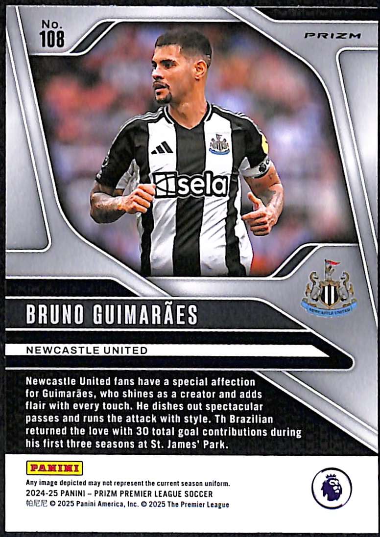 Bruno Guimaraes Checker parallel #108 – Newcastle colour match from 2024-25 Panini Prizm Premier League
