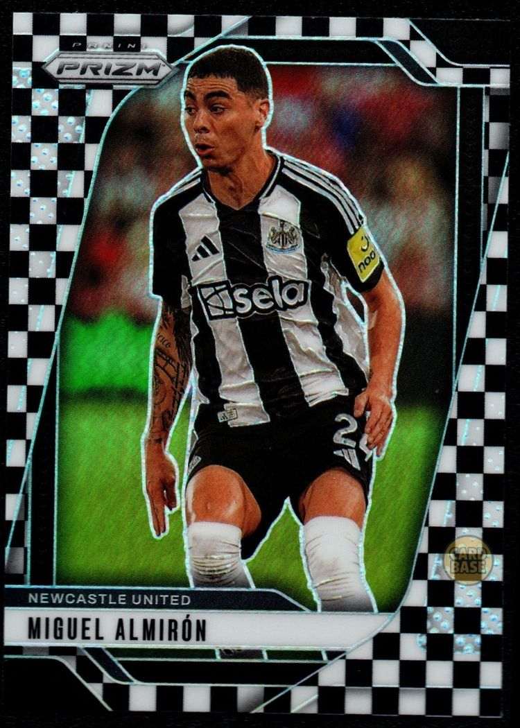 Black and White Checker Prizm parallel featuring Newcastle winger Miguel Almirón.