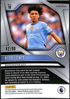 Rico Lewis Blue Breakaway Card #10 42/99 – Panini Prizm Premier League 2024-25