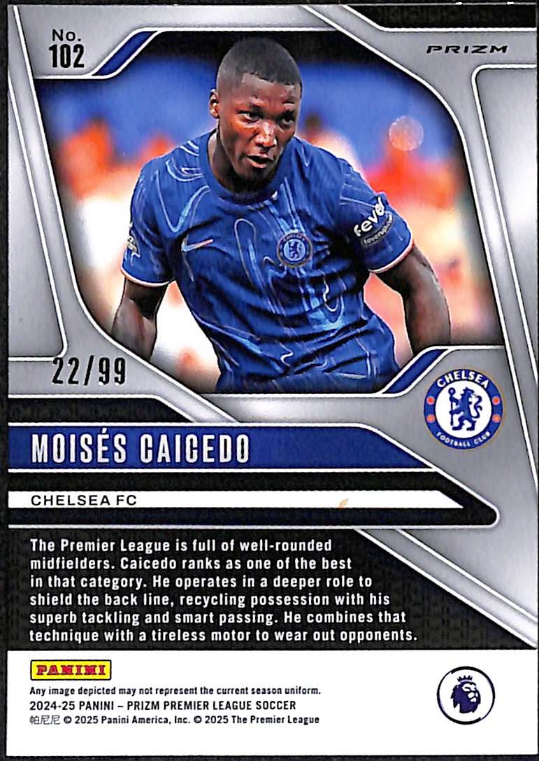 2024-25 Panini Prizm Premier League Blue Breakaway Card 102 Moises Caicedo 22/99