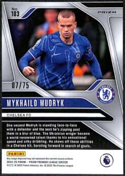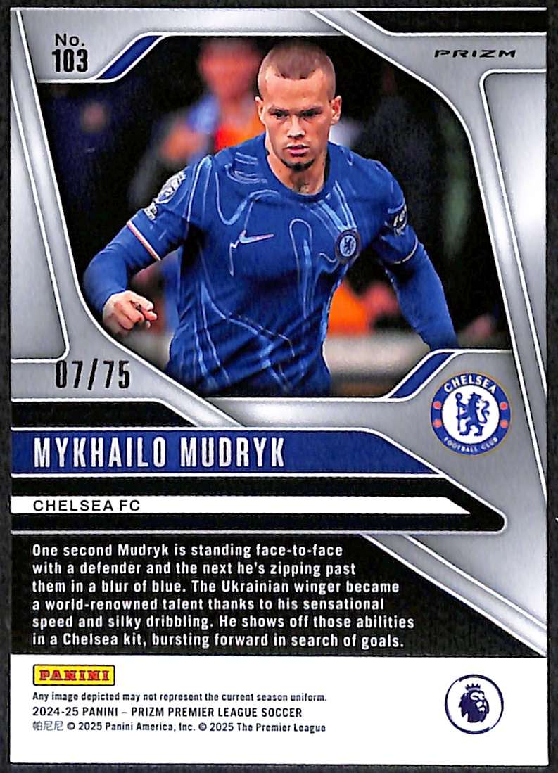 Mykhailo Mudryk #103 – Chelsea FC 2024-25 Panini Prizm Blue Ice 7/75