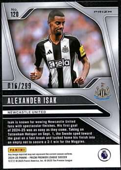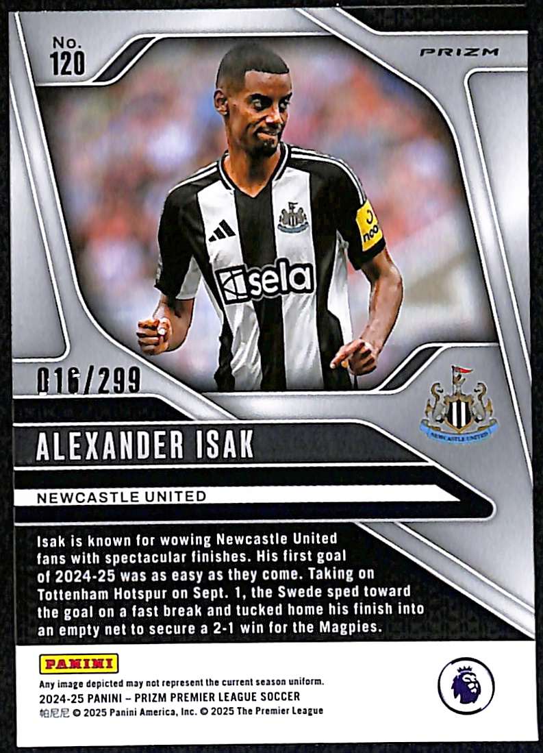 Alexander Isak #120 – Newcastle United 2024-25 Panini Prizm Blue Prizm 16/299