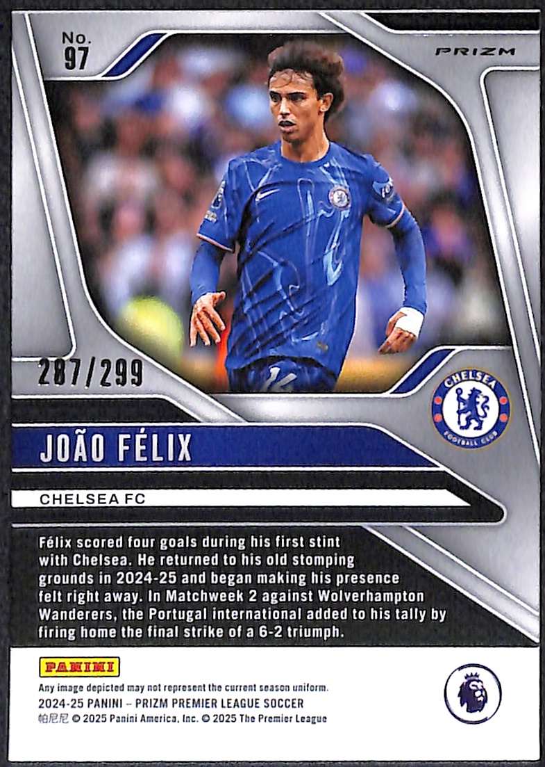 Joao Felix #97 – Chelsea FC 2024-25 Panini Prizm Blue Prizm 287/299