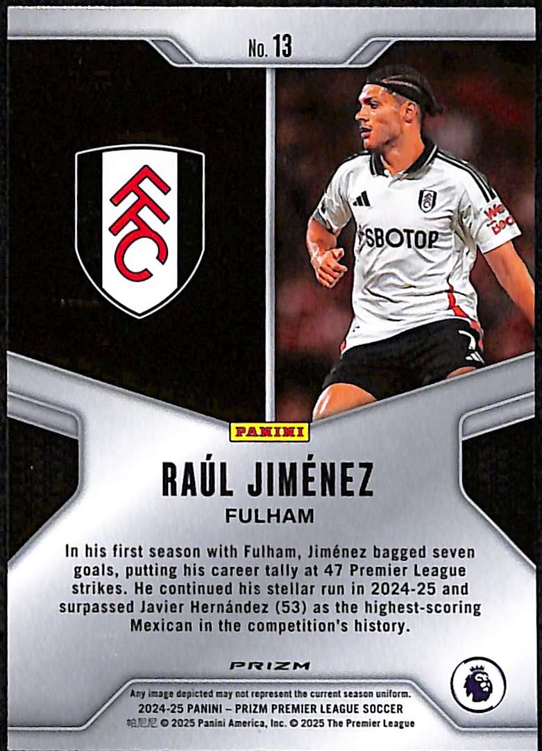 2024-25 Panini Prizm Premier League Brilliance SILVER Insert Card 13 Raul Jimenez