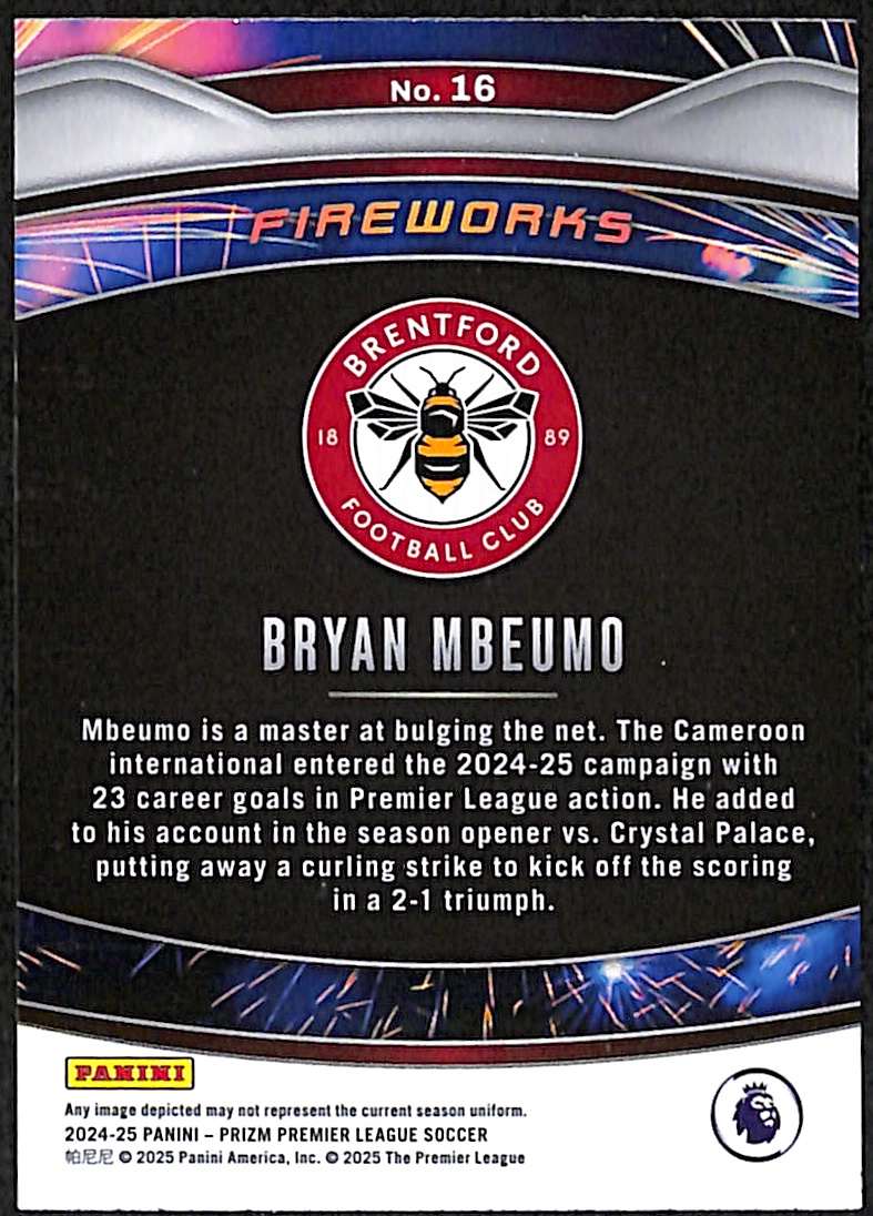 Bryan Mbeumo #16 – Brentford 2024-25 Panini Prizm Fireworks Insert