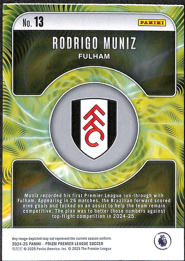 Rodrigo Muniz #13 – Fulham 2024-25 Panini Prizm Fractal Insert
