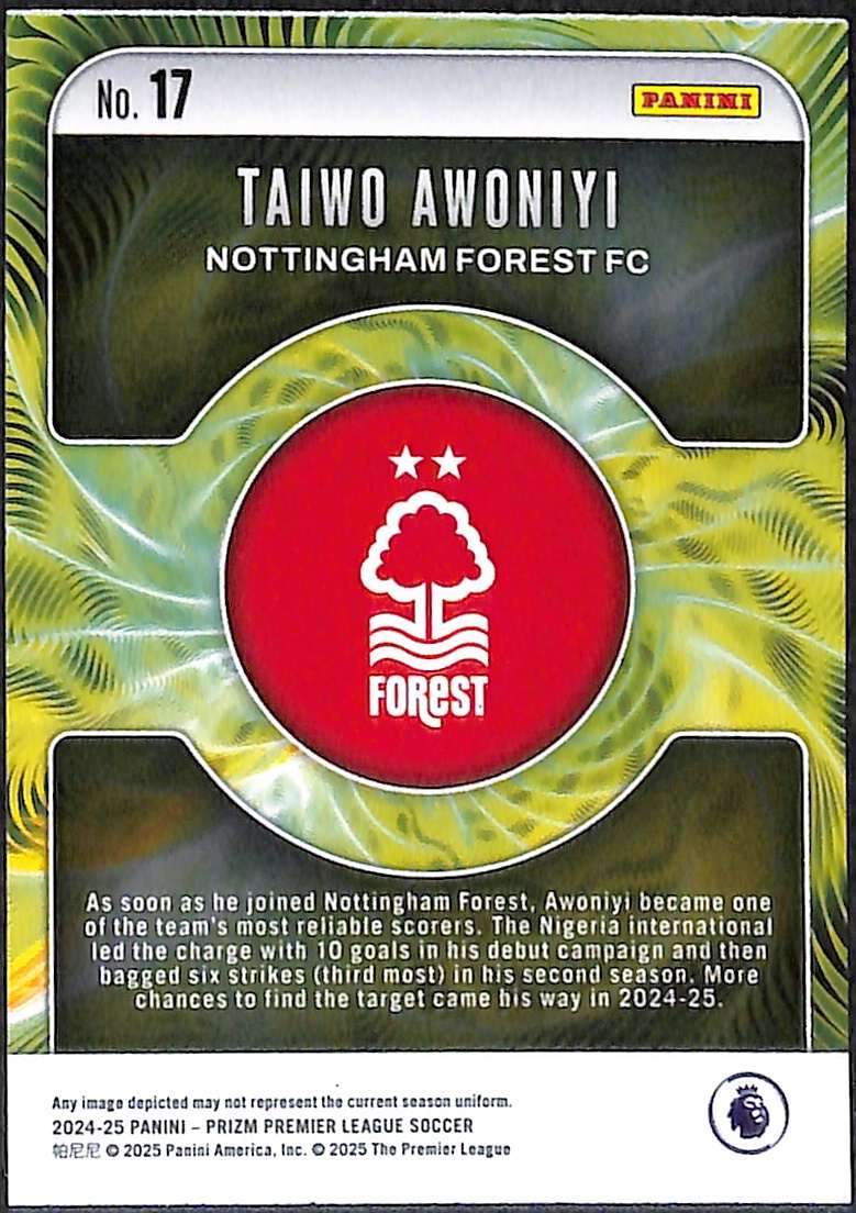 Taiwo Awoniyi #17 – Nottingham Forest 2024-25 Panini Prizm Fractal Insert