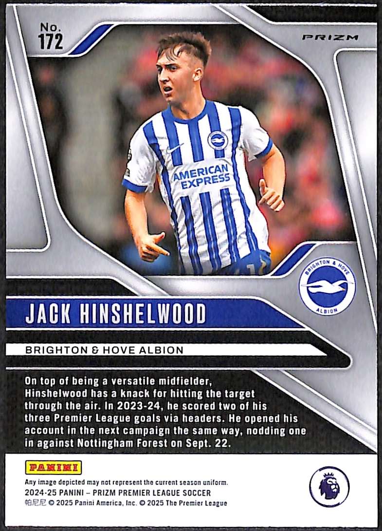 2024-25 Panini Prizm Premier League Pink Mosaic Card 172 Jack Hinshelwood