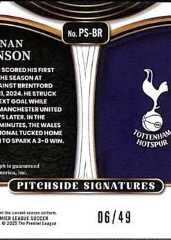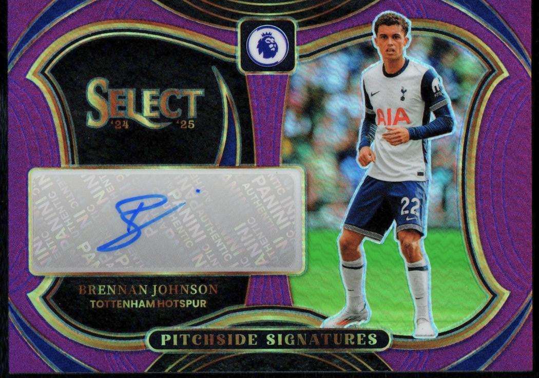 2024–25 Panini Select Premier League Pitchside Signatures Purple Card #PS-BR Brennan Johnson 6/49