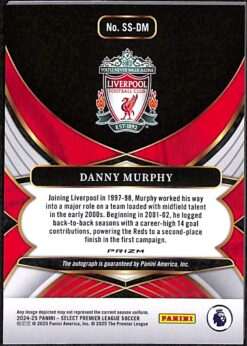 This Danny Murphy Silver Auto is card number SS-DM from the 2024-25 Panini Select Premier League collection. The Silver parallel adds a refractor finish to the classic Select Signatures design, giving it a clean, premium look.