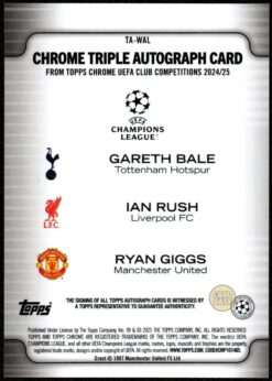 Gareth Bale, Ian Rush, Ryan Giggs Black Triple Autograph Card – Topps Chrome UEFA 2024–25