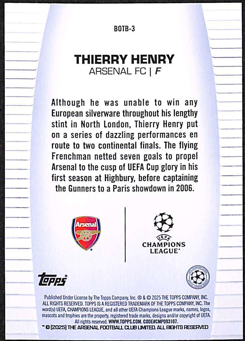2024-25 Topps UEFA Club Competitions Best of the Best UCL Legends Card #BOTB-3 Thierry Henry