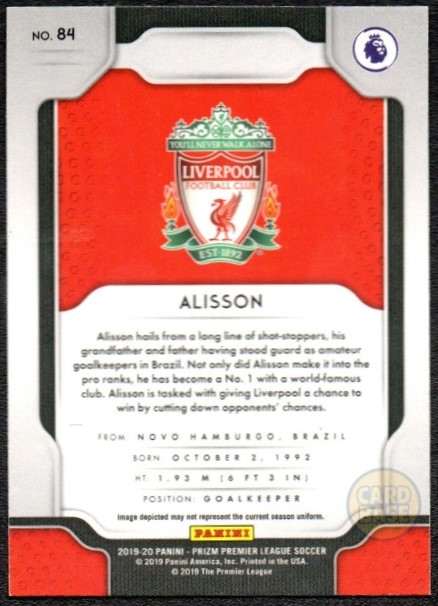 - Alisson base card from 2019-20 Panini Prizm Premier League