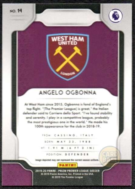 Angelo Ogbonna #14 West Ham United Base Card – 2019-20 Panini Prizm Premier League