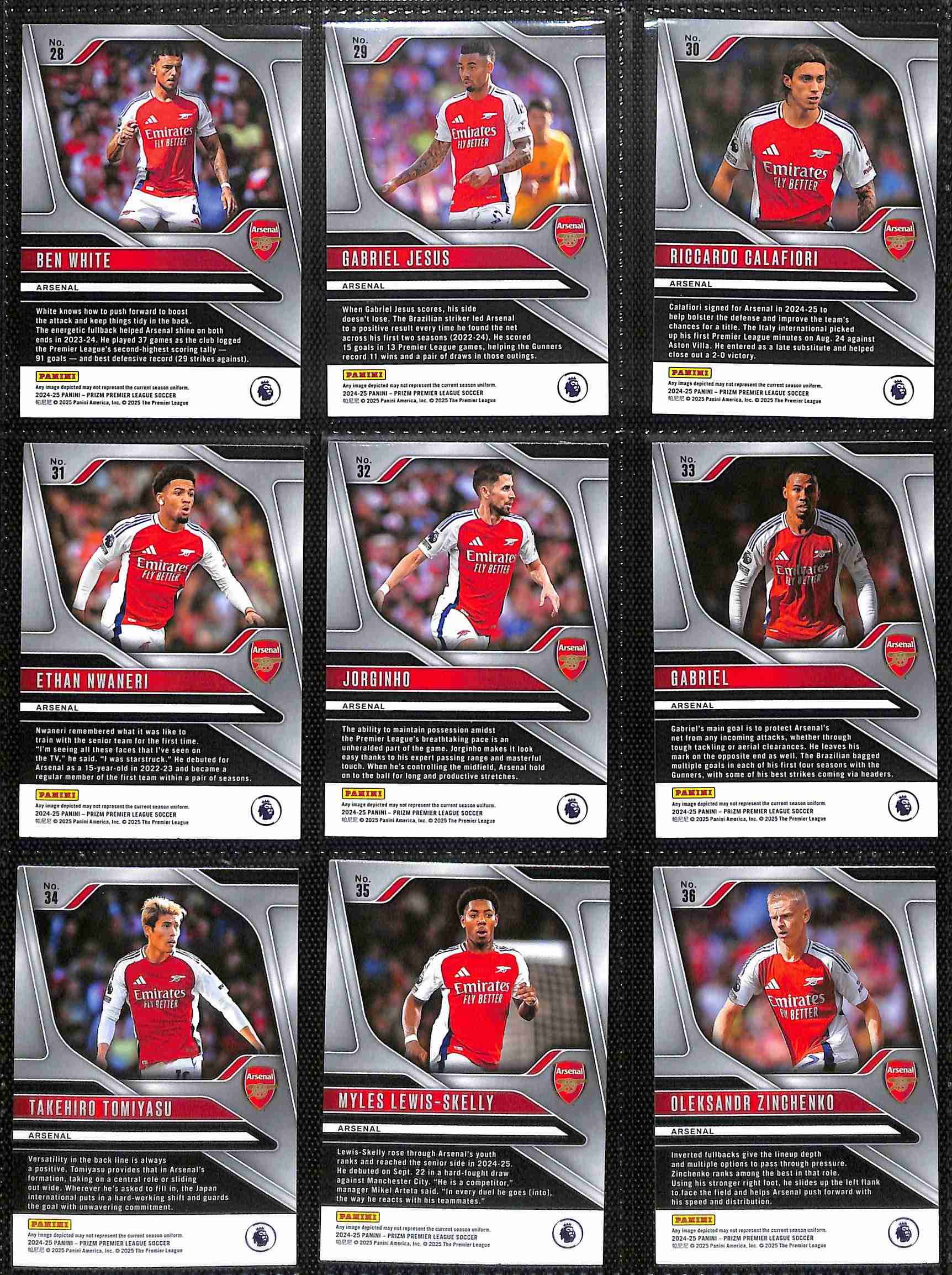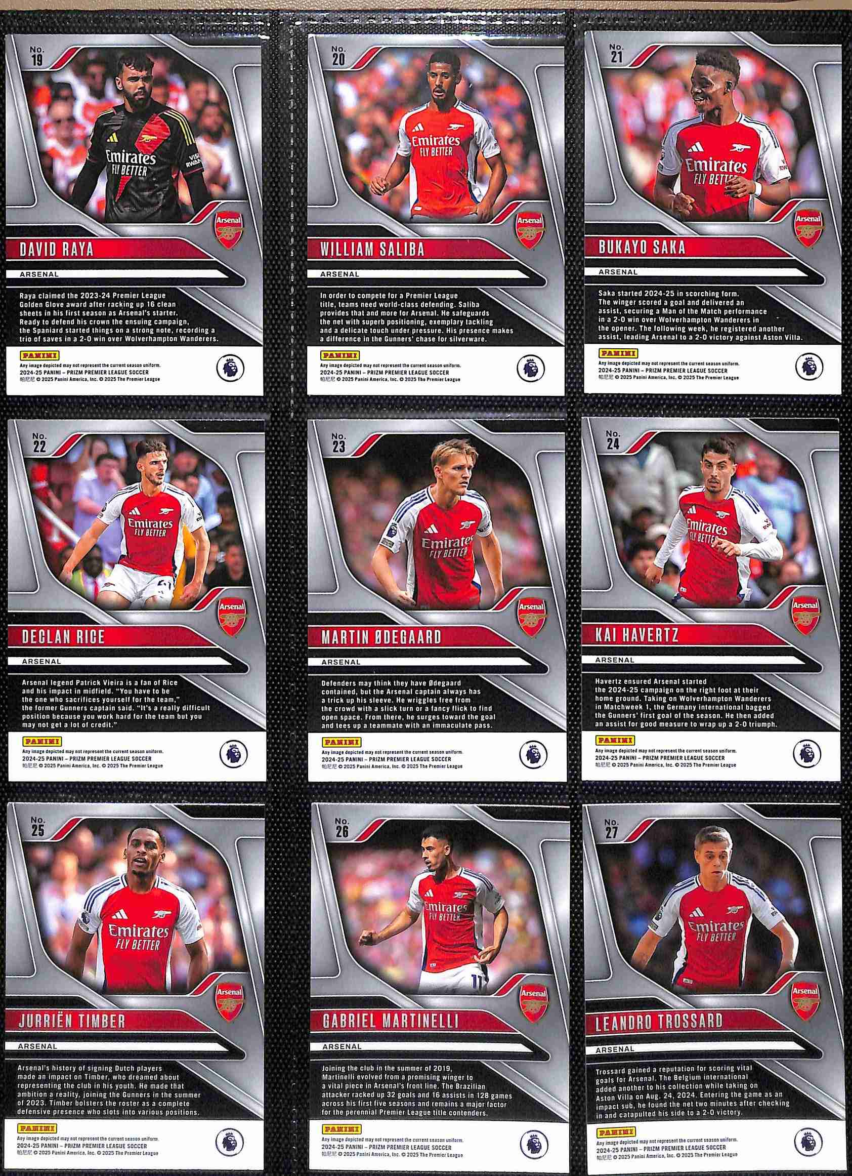 - All 18 Arsenal base cards from the 2024–25 Prizm series
