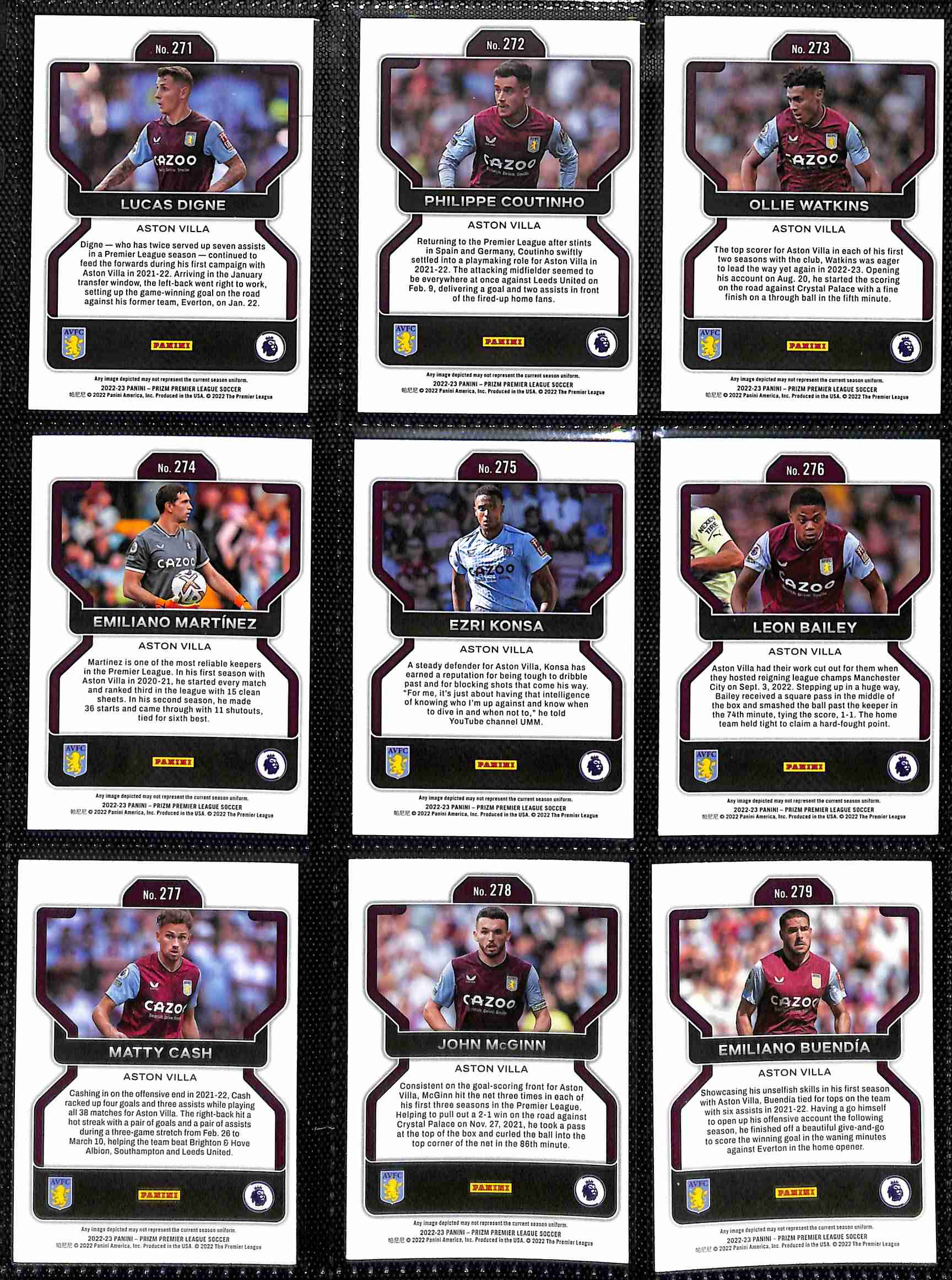 Aston Villa 2022–23 Panini Prizm Premier League Complete Base Set